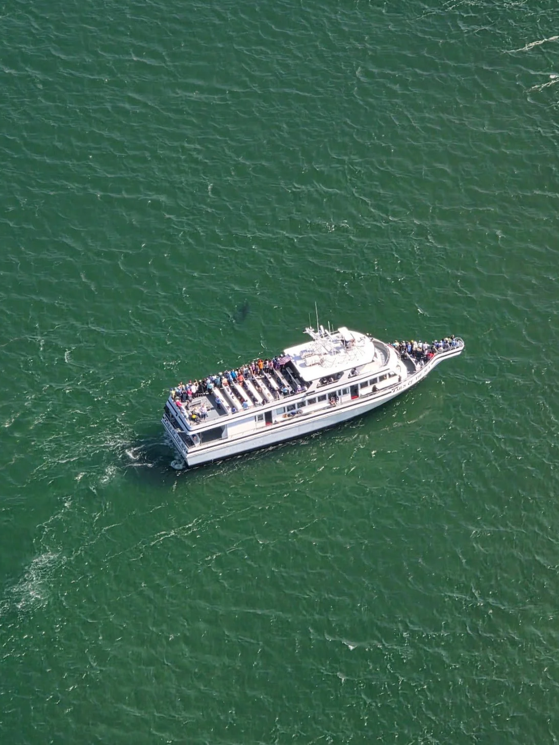 These trips are run using The Tales of the Sea, a vessel owned and operated by Captain John Boats. The Tails of the Sea is a whale watch boat which gives us a raised view of all marine wildlife, including white sharks. The benefit of this raised view is that you can see sharks who are deeper in the water and would be tough to see from a boat which was lower to the water. Due to the size of the Tails of the Sea, we do have to stay in water that is at least 10 feet deep, which may determine which areas we can go to for viewing sharks.